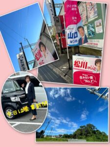 週の初めは新石切駅からのスタートです。 どこまでも続く青い空、新石切駅では高架の中で挨拶を交わすので少し暑さが和らぎます。 懐かしい友人にも会うことができ元気に出発できました。 昨日は、ミニ市政報告会を開催。手作りパネル […]