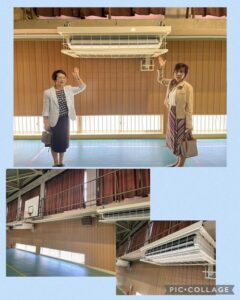 第一避難所に指定されている教育センターの体育館を視察。 4年前に皆様とお約束していたエアコンが設置されました。 本市78ヶ所の避難所となっている全ての小中学校の体育館に、来年度中に設置完了予定です。