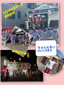 今日も暑い1日。 28.19.30日、地元石切神社の夏季大祭。 6年ぶりに夏の祭りで芝太鼓台の担ぎ出しです。 今日は朝から神輿渡御大弊神事が行われました。 自治会、保存会、青年団、消防団など多くの方々に感謝。とても活気の […]