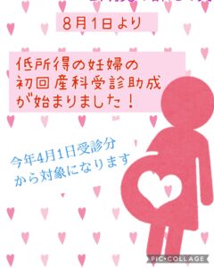 初回産科受診料の助成が始まりました