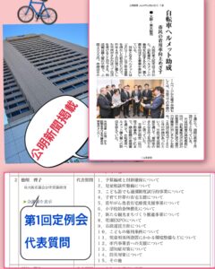 これまで本会議、委員会等で訴えてきた「自転車ヘルメット助成」が年齢制限なく実施され公明新聞に掲載を頂きました。 3月7日(木曜日)令和6年度第一回定例会の代表質問をおこないます。 やっと原稿が出来上がりました。 多岐にわ […]