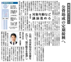 7月1日、一年の折り返しの日となりました。 一日一日を大切に積み重ねていきたいと思います。 6月にお知らせした「帯状疱疹ワクチン」定期接種化について公明新聞に掲載されました。 党厚労部会会長のいさ進一衆議院議員を先頭に地 […]