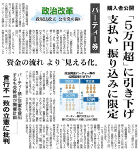 法律が通ってそれで終わりではなく、その先が重要です。 「何を検討し、誰が検討するのか、検討の時期はいつなのか、詳細を詰めて実現すること」。 公明党は「改正政治資金規正法実施推進プロジェクトチーム」を結成しひとつひとつ議論 […]