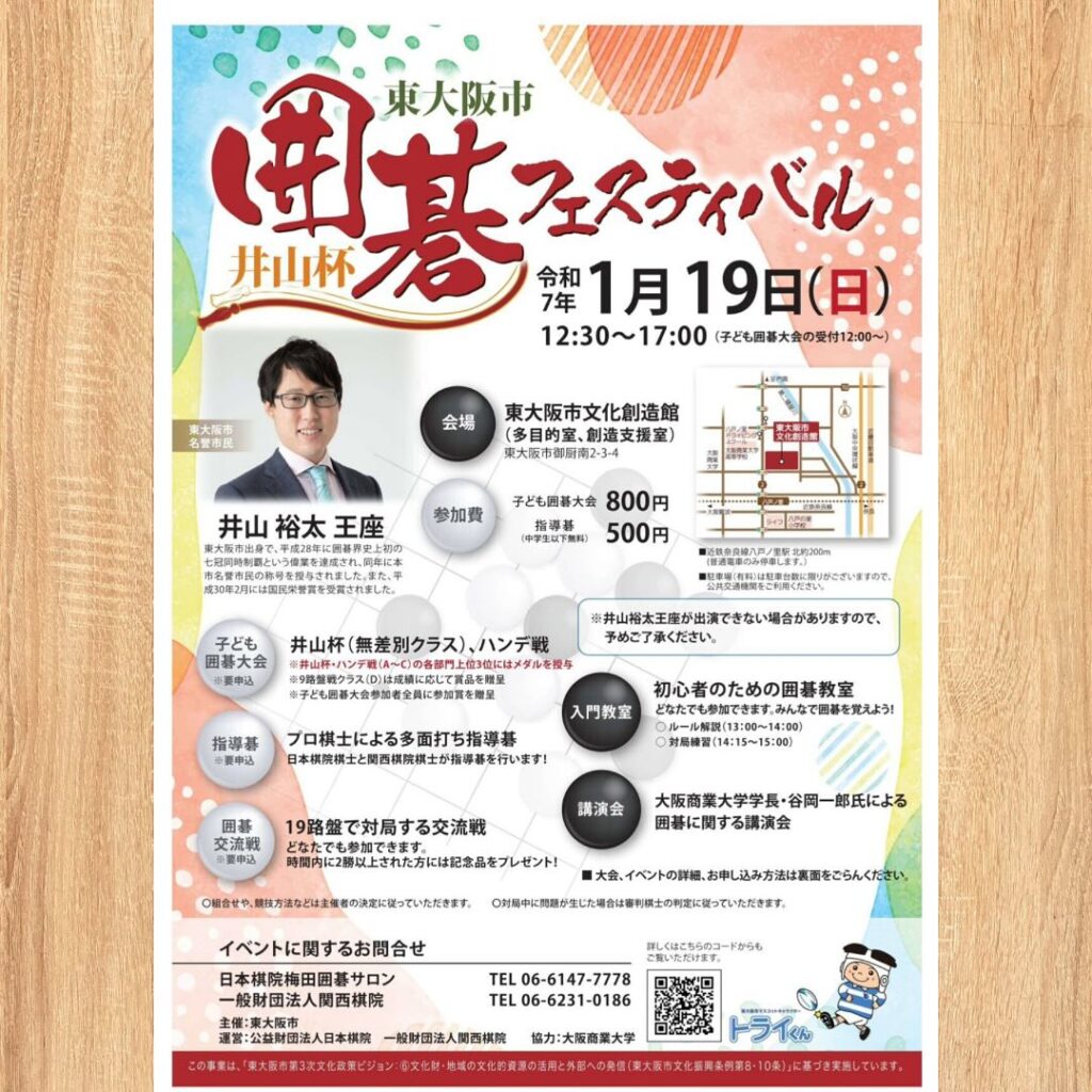 この機会を通し、囲碁の魅力を東大阪から発信し拡げていければと思います。
