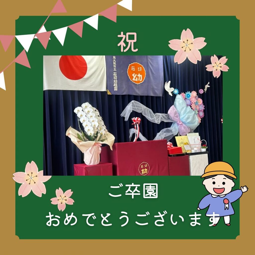 3月14日 石切幼稚園の修了証書授与式 2025年3月15日 最終更新日時 : 2025年3月15日 Matsukawa 石切幼稚園の修了証書授与式。 21人が晴れて卒園の日を迎えました。 背筋をピンと伸ばし、手をきちんと膝に置いて、最後まで胸を張って卒園児として式典に参加する姿は成長の証です。 「やりたいこと・なりたいもの・素敵な自分を見つけてください」との園長先生との3つの約束、そのひとつひとつが叶いますように。 3人の子供たちも通った思い出が溢れる幼稚園。 ここから始まる新しい未来が素晴らしいものになることを祈っています。