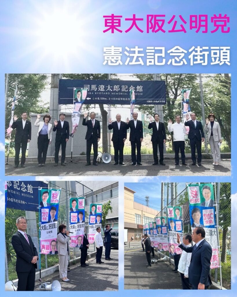 八戸ノ里駅前にて、山下府議と議員団で街頭演説。