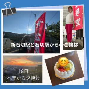残暑お見舞い申し上げます。 お盆明けとなる18日は新石切駅、そして今日は石切駅からご挨拶をさせていただきました。 まだまだ暑い日が続きますね💦 どうかお気をつけてお過ごしください♪ 我が家ではそれぞれ仕事上、なかなか家族 […]