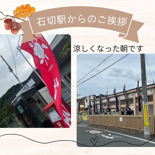 9月24日 石切駅からのご挨拶 2025年9月29日 最終更新日時 : 2025年9月29日 Matsukawa 石切駅からのご挨拶です。 風も強くのぼり旗が風に煽られるので、手で支えつつ‥ この前まで夏祭りで盆踊り踊っていましたが、来月はもう秋祭りが始まります。 地元の石切神社の旗も綺麗に並びだしました。