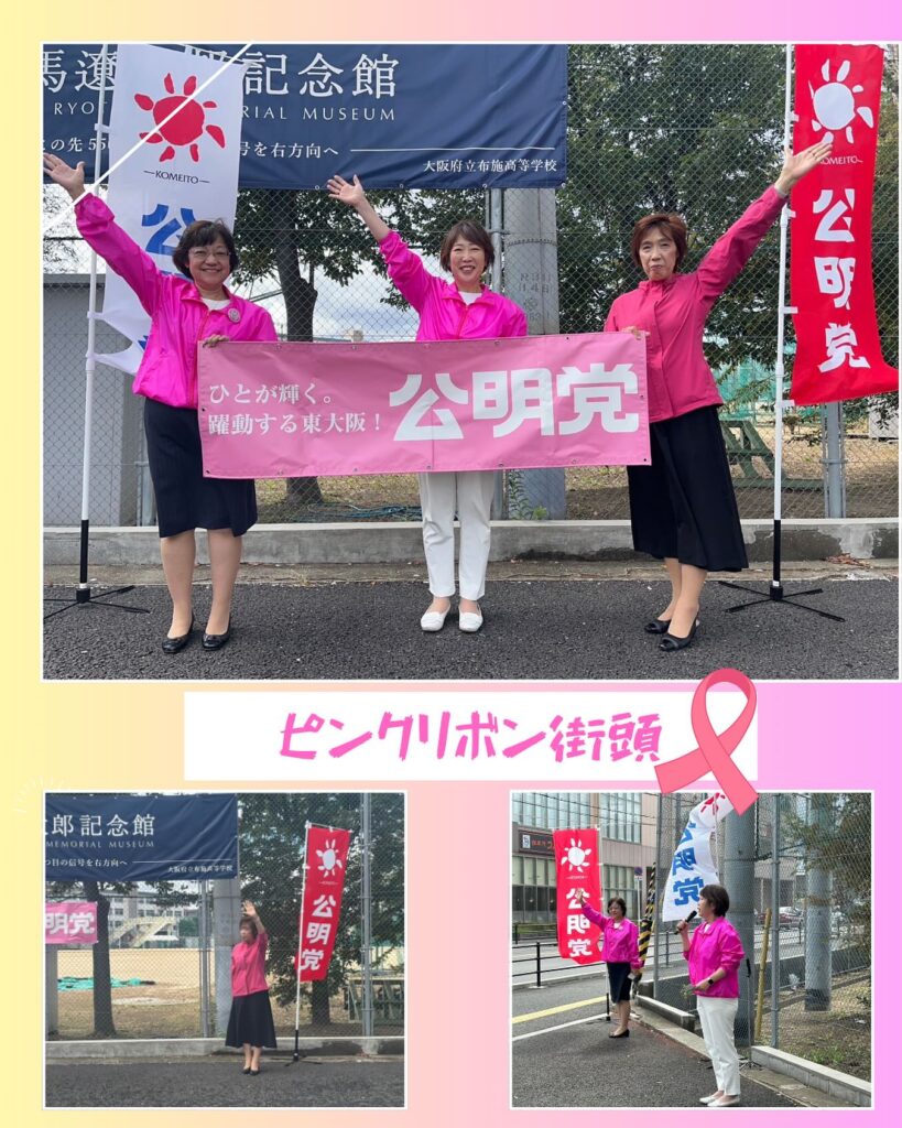 10月は「ピンクリボン月間」乳がん撲滅を祈り、早期発見のための検診を促すピンクリボン街頭を行いました。