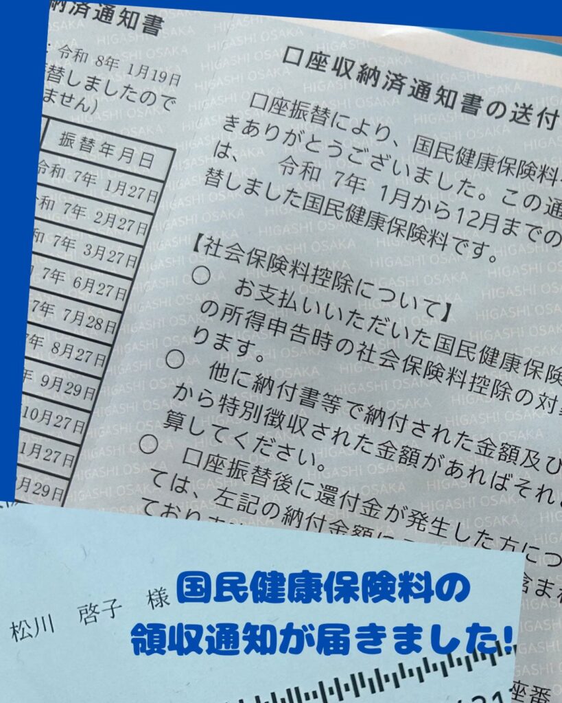 1月23日 自宅に「国民健康保険料口座収納済通知書」が届きました 2026年2月9日 最終更新日時 : 2026年2月9日 Matsukawa 自宅に「国民健康保険料口座収納済通知書」が届きました。 社会保険料は控除の対象となるので、1年間にわたって支払った保険料について報告されています。 以前はこの通知書は毎月ごとに送付されていましたが、我が党の先輩議員が「経費削減の観点からも1年間分をまとめて送るべき」と質問し、取り入れられたものです。 国民健康保険加入者で口座からの収納になっておられる方については、まもなくお手元に届くと思いますのでよろしくお願い申し上げます。