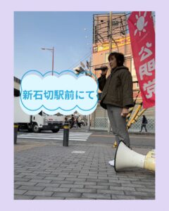 木曜日は新石切駅からのご挨拶。 「寒いけど頑張って」の声に勇気を頂きました。 そんな皆様からの声に、今やるべき事を、そしてこれまでの思いを変える事なく頑張っていこうと改めて決意した朝でした。
